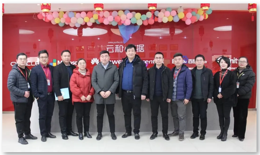 1月19日,河南华信阳光教育科技集团副总经理张伟,就业创业指导中心主任王美英,培训学院院长李晓峰,培训学院培训主管郑晓航一行莅临云和数据参观交流。