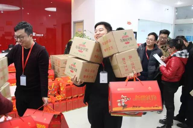 福利发放现场,每一位员工的脸上都洋溢着喜悦之情,福利捧在手里,暖在心里。