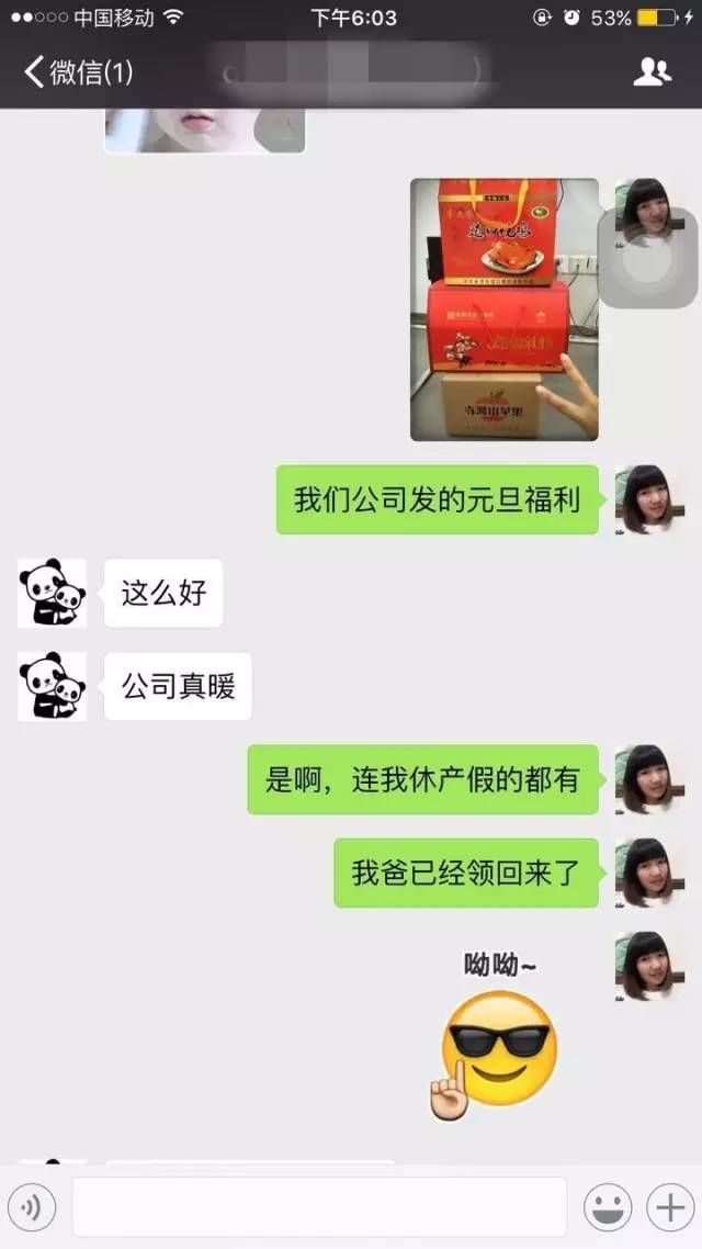 休产假的小伙伴也感受到了BOSS的这份暖心,公司同事特别提醒让家人来领取。