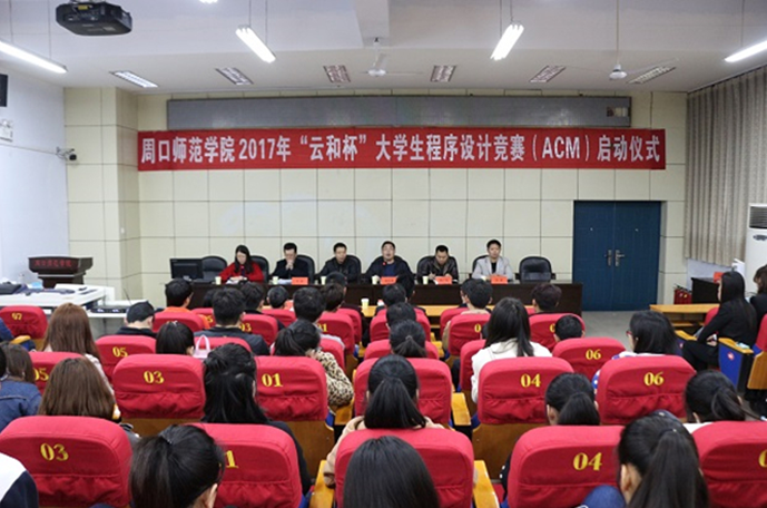 周口师范学院也非常重视本次活动,比赛前组织了由校领导参与的启动仪式。仪式由网络工程学院党总支副书记黄兴华主持,团委副书记高长海、网络工程学院、数学与统计学院等部门负责人及赛事选手出席。