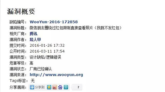 姿势三:有白帽黑客发现,红包照片存在漏洞,微信用户可以绕过红包限制,不付钱直接查看照片。(2016年3月11公开漏洞,好期待!)
